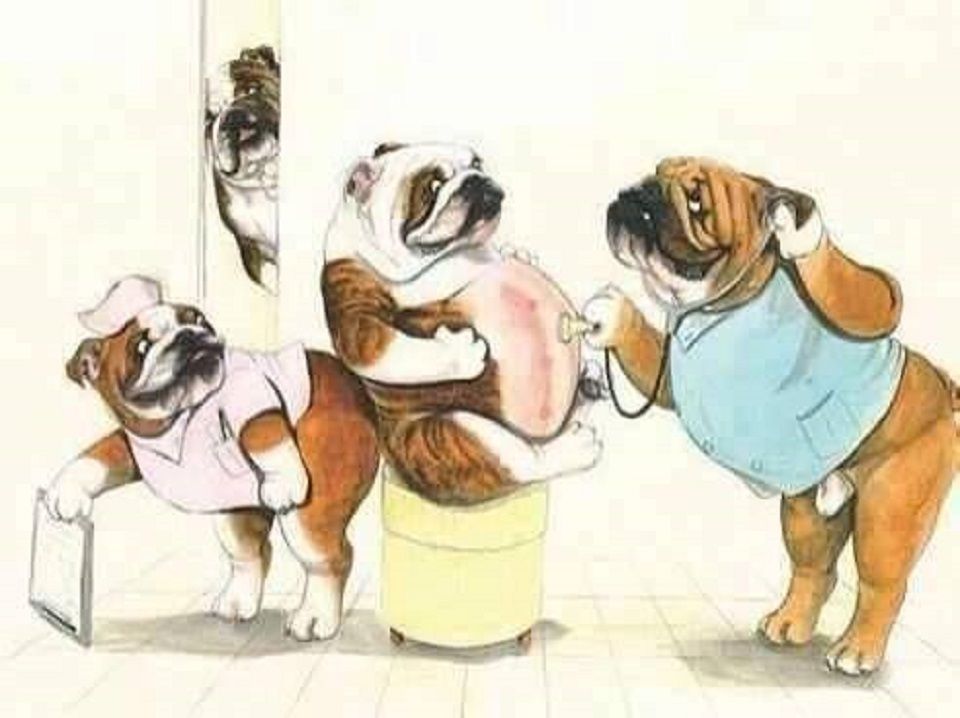déguisement dessin bulldog bully bande dessinée bd illustration médecin toubib patient infirmier infirmière au boulot métier profession santé repos
