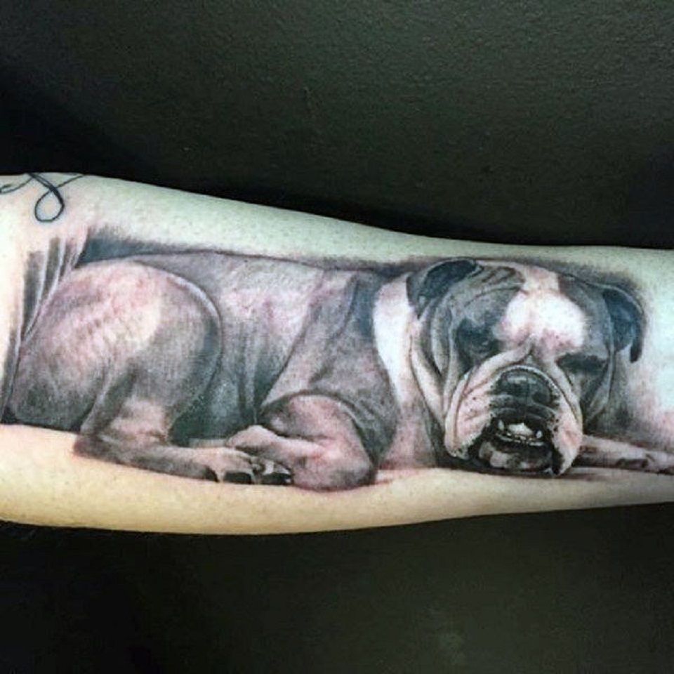 tableau tatouage bulldog bully portrait couché sommeil repos sieste repos