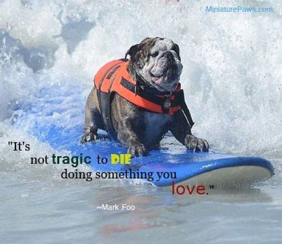 chiot citation bon mot bulldog bully remarque mort mourir tragédie faire ce qu on aime sport sportif loisir sport d eau fun board fun boarder fun board