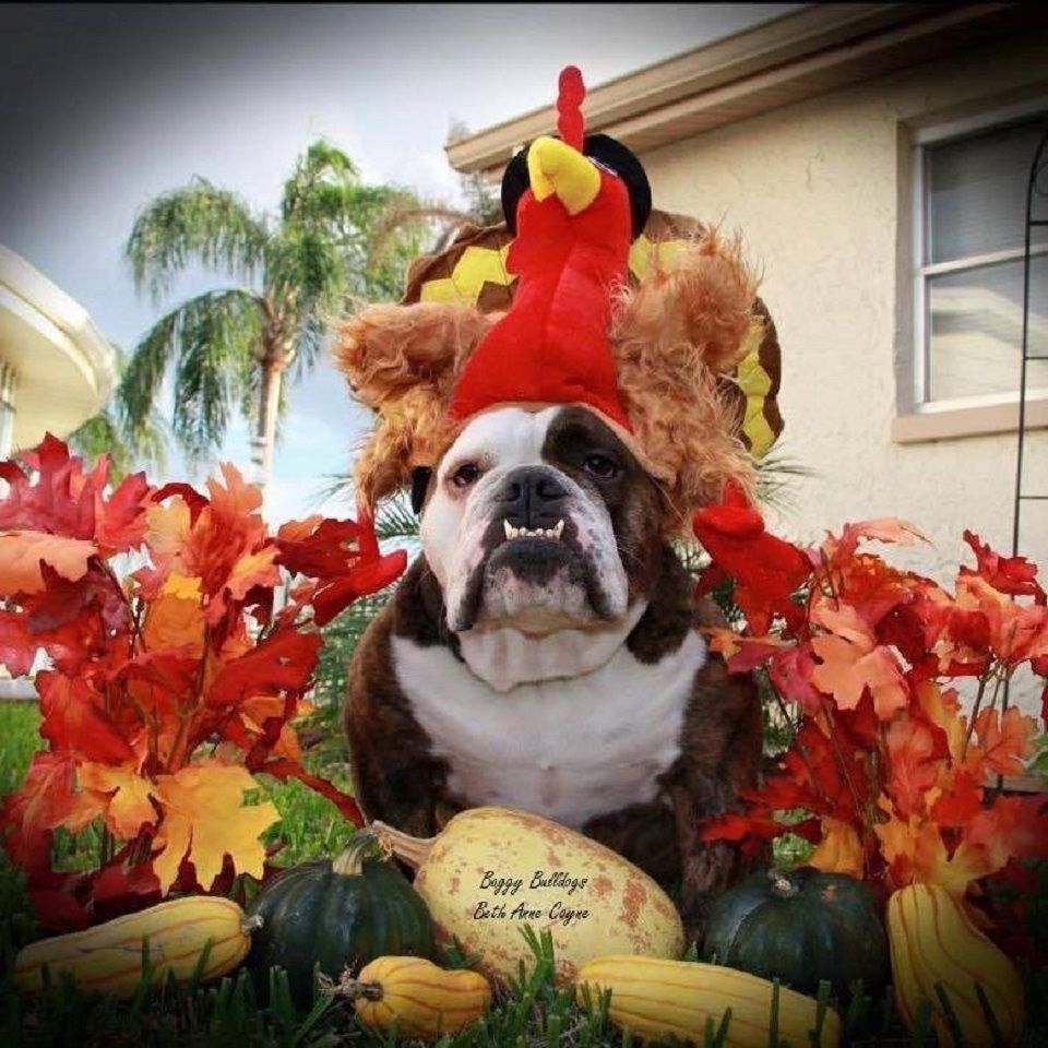 tenue vestimentaire thanksgiving bulldog bully dinde costume déguisement automne feuilles mortes fruits d automne fratrie
