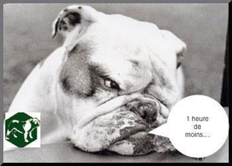 bully changement d heure bulldog bully passage a l heure d ete heure d ete une heure de sommeil en moins colère mécontentement noir et blanc grimace mauvaise humeur manque de motivation