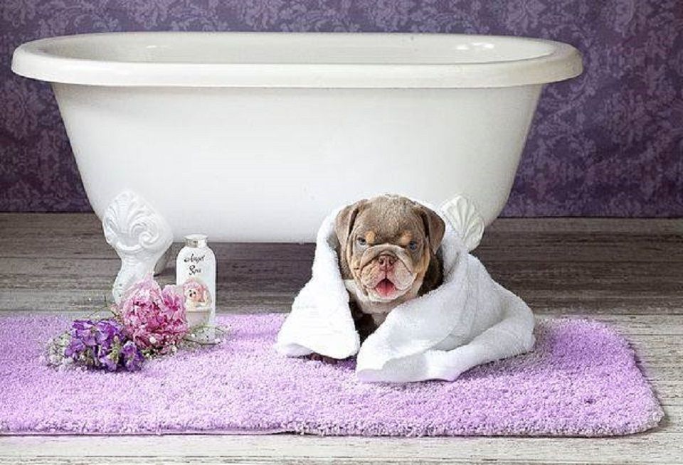 baignoire bain toilette bulldog bully baignoire serviette de toilette produits de bain fleurs lavandes kdo offert
