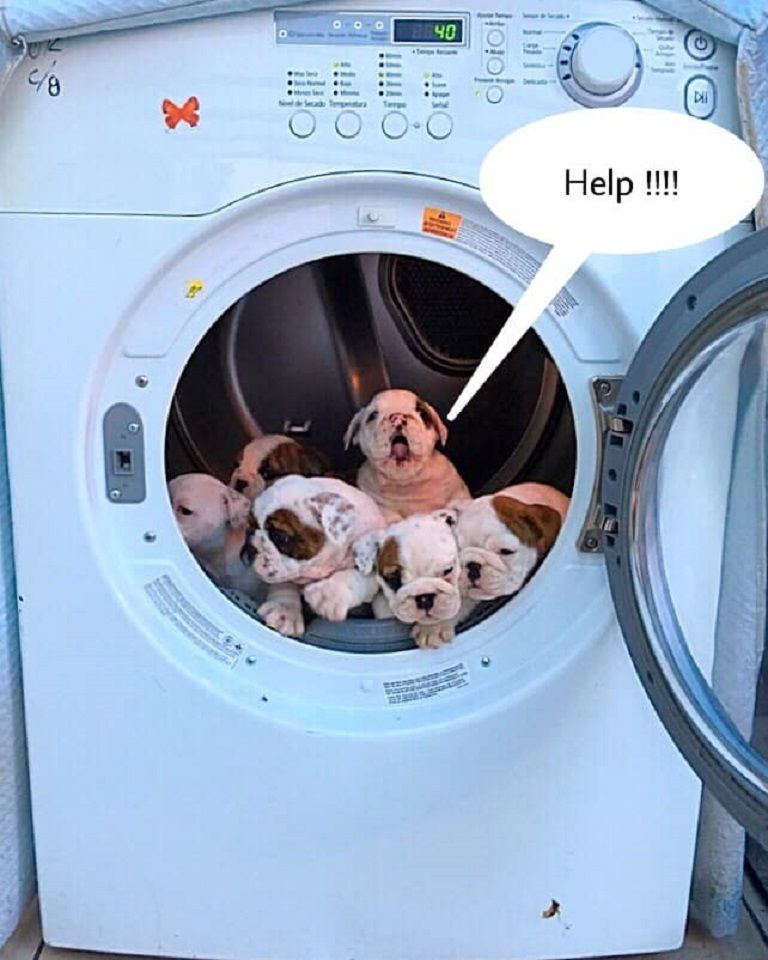 hiver humour bulldog bully fratrie élevage de bulldogs bain toilette lavage séchage machine à laver lave linge lavage