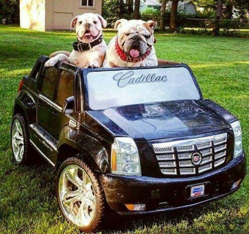 toile voiture automobile moyen de transport bulldog bully couple duo fratrie famille jeu jouet cadillac bully