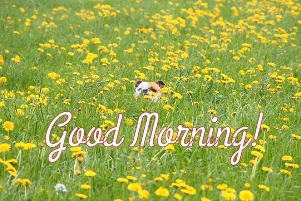 belle image de bully bonjour good morning bulldog bully printemps pissenlits prés champs bully