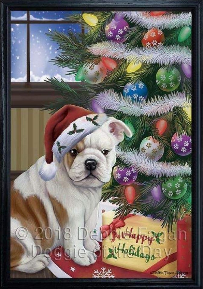 neige noel bulldog bully happy holidays sapin de noel boules de noel bonnet de noel guirlandes de noel illuminations de noel illuminations humour