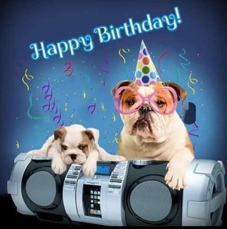 amour anniversaire joyeux anniversaire bulldog bully duo couple fratrie copain ami happy birthday musique radio fete d anniversaire chapeau d anniversaire confettis coeur