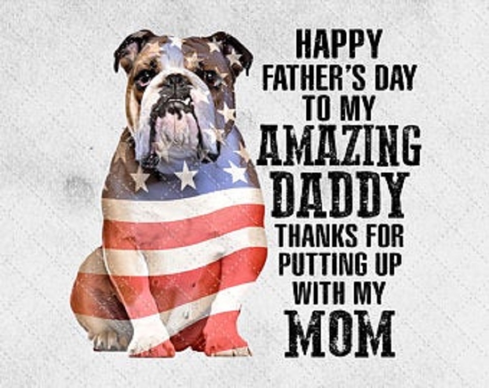 fatigue fete des pères bulldog bully bonne fete des pères papa happy fathers day merci remerciement drapeau américain déguisement