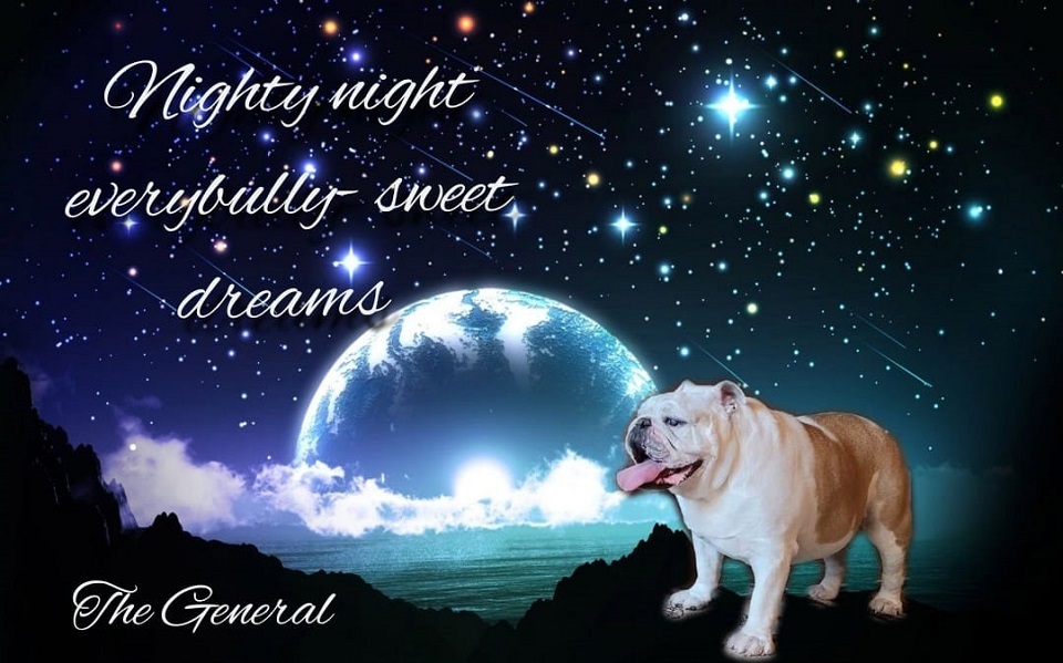 bonjour bonne nuit bulldog bully good night planète système solaire terre ciel étoiles enfant