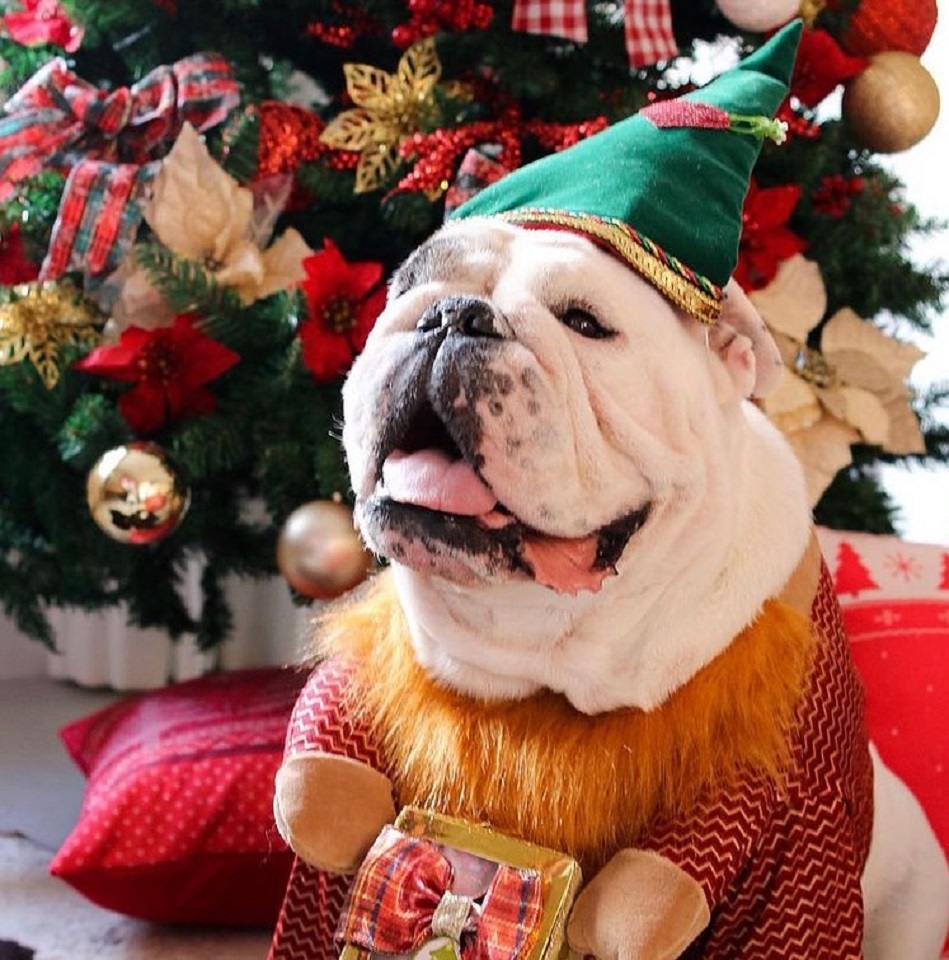 neige noel bulldog bully cadeaux de noel sapin de noel boules de noel guirlandes de noel costume de noel bonnet de noel bonjour