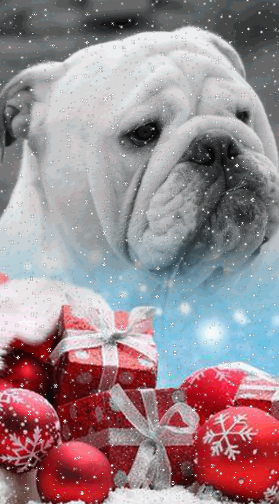 neige noel bulldog bully cadeaux de noel boules de noel neige chute de neige gif animé créa perso kdo offert jeu