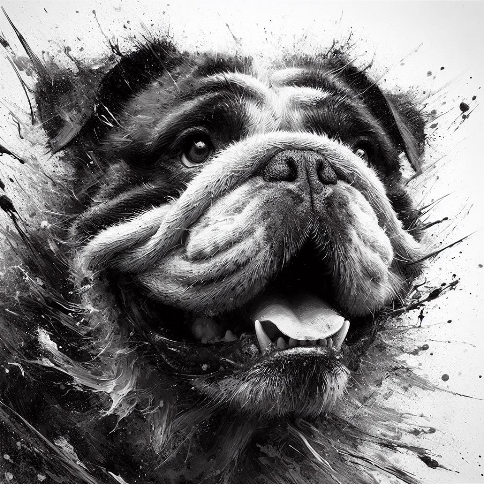 peintre animalier peinture toile tableau bulldog bully portrait noir et blanc noel