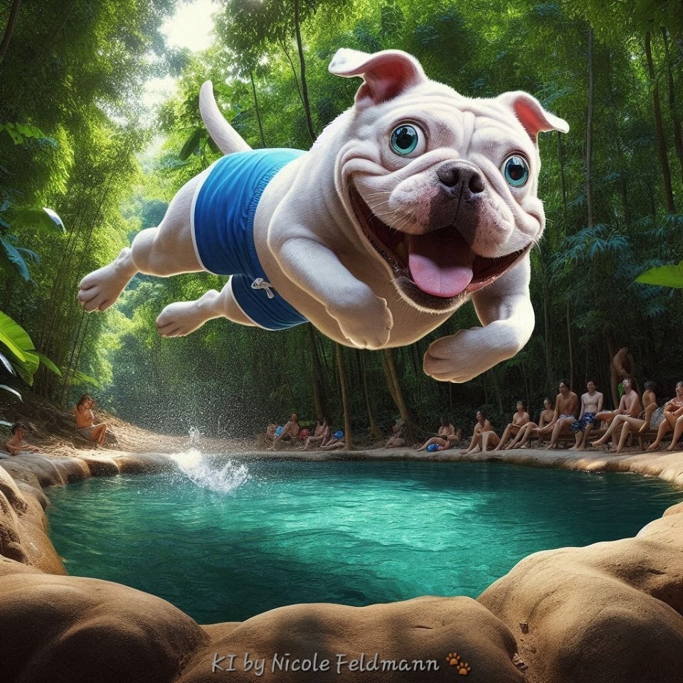 kdo offert loisirs bulldog bully plaisir plongeon natation short de bain vacances piscine peinture