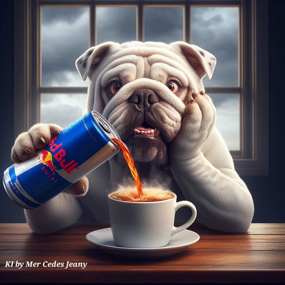 repos réveil difficile matin pénible bulldog bully café redbull boisson énergisante manque de motivation sommeil envie de dormir enfant