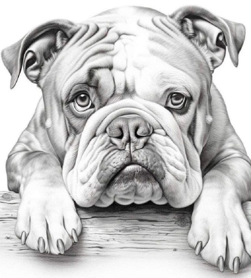 déguisement dessin bulldog bully portrait graphite noir et blanc noel