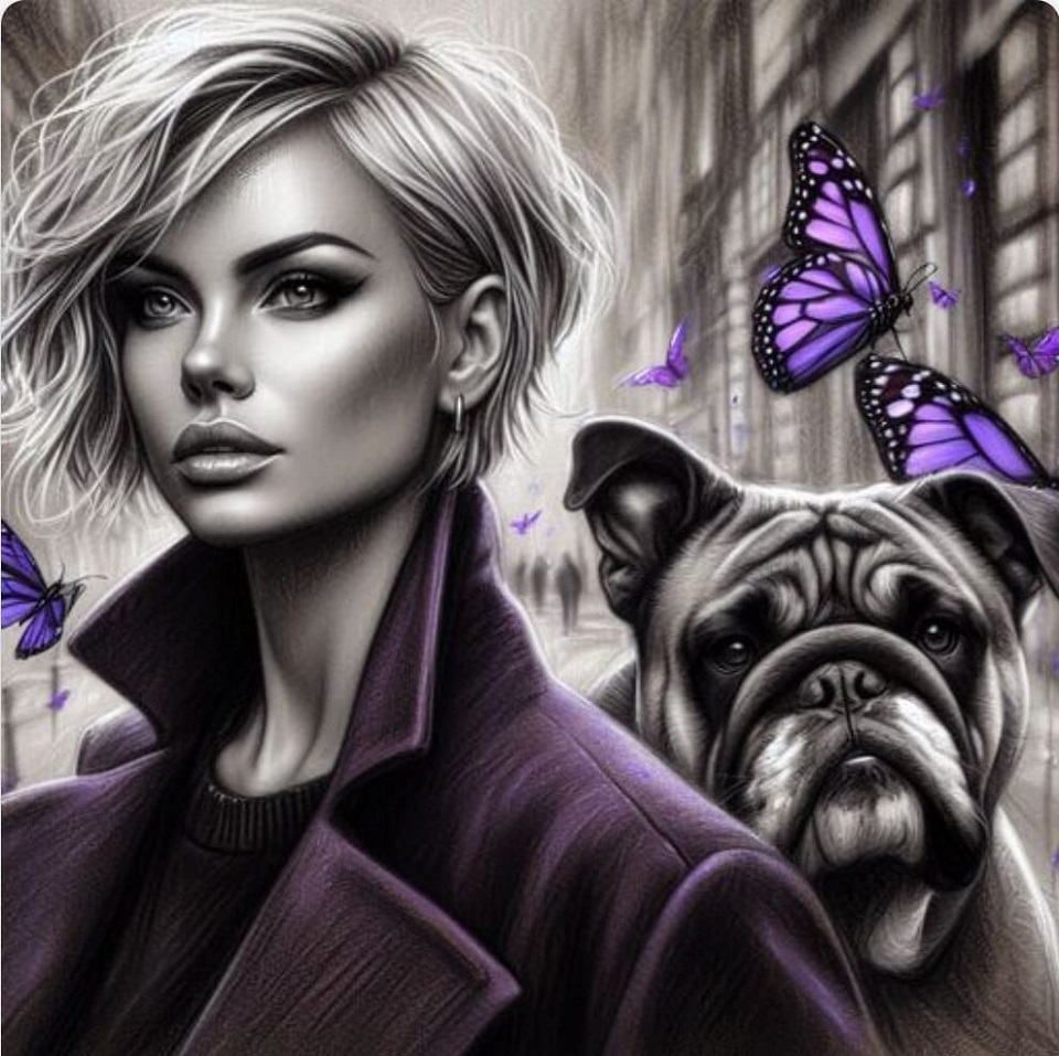 kdo offert madame et son bull bulldog bully femme jolie femme en cie animaux divers papillons sentiments repos