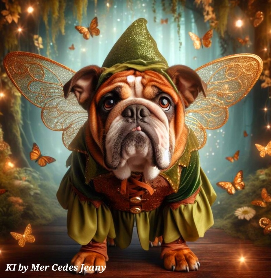 fantaisie fantastique bulldog bully fantaisie elfe gnome lutin papillons univers fantaisiste image background center mer merci mer