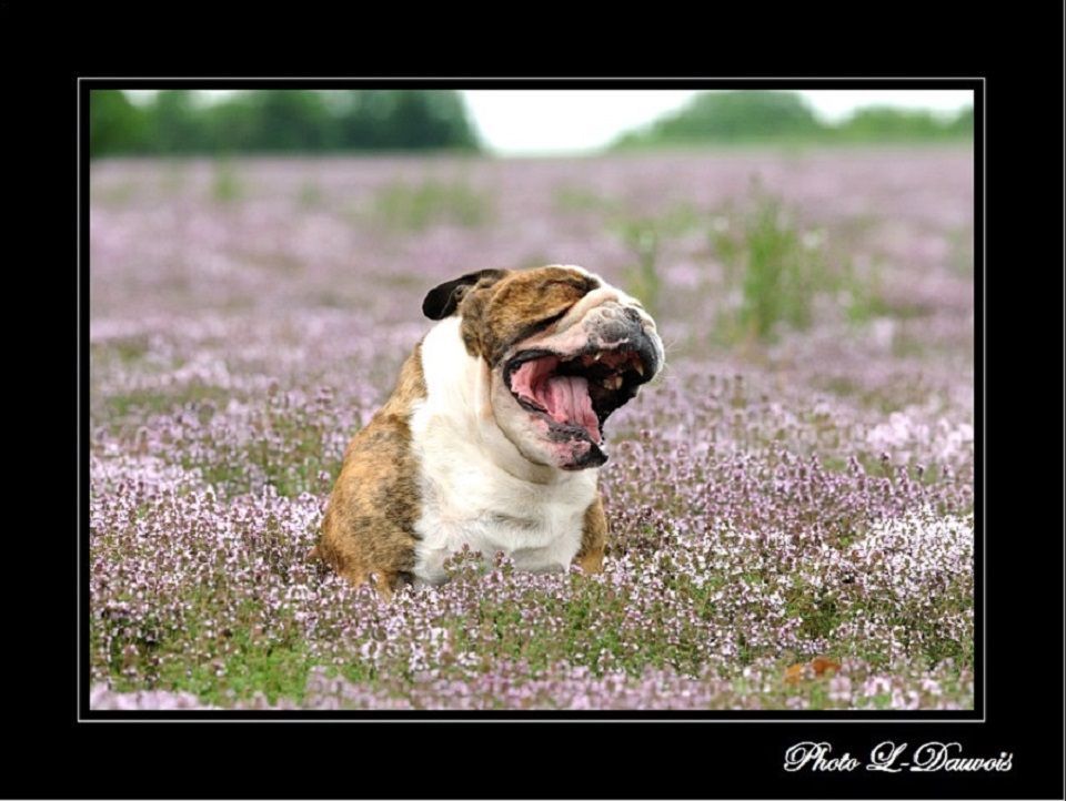 fatigue fleur jardin bulldog bully chien chiot bruyere photographe animalier élevage éleveur élevage