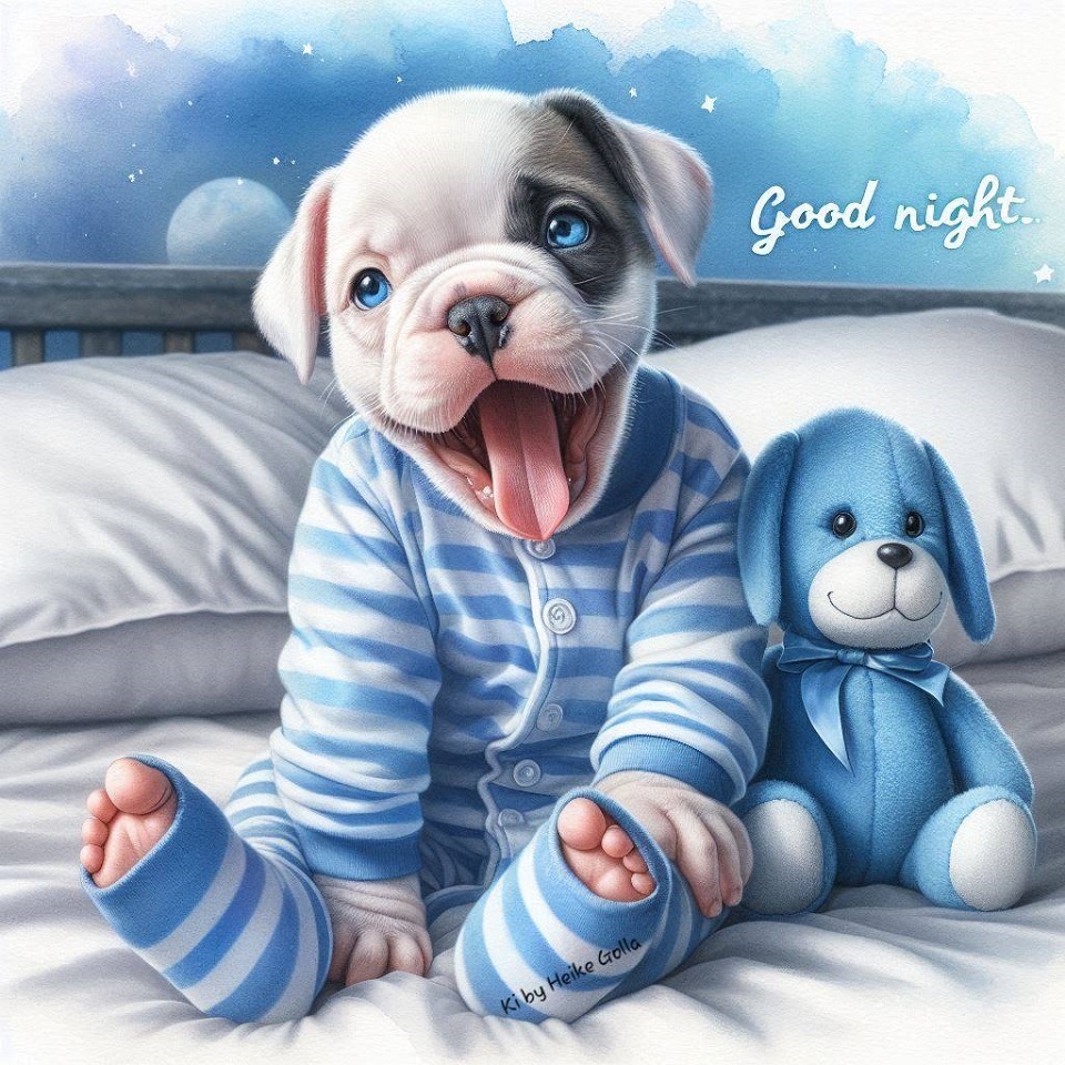 bonjour bonne nuit bulldog bully good night pyjama doudou peluche lune bleu belle image de bully