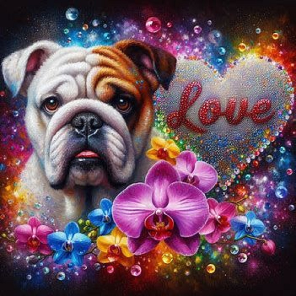 kdo offert love bulldog bully coeur fleurs orchidées nuit