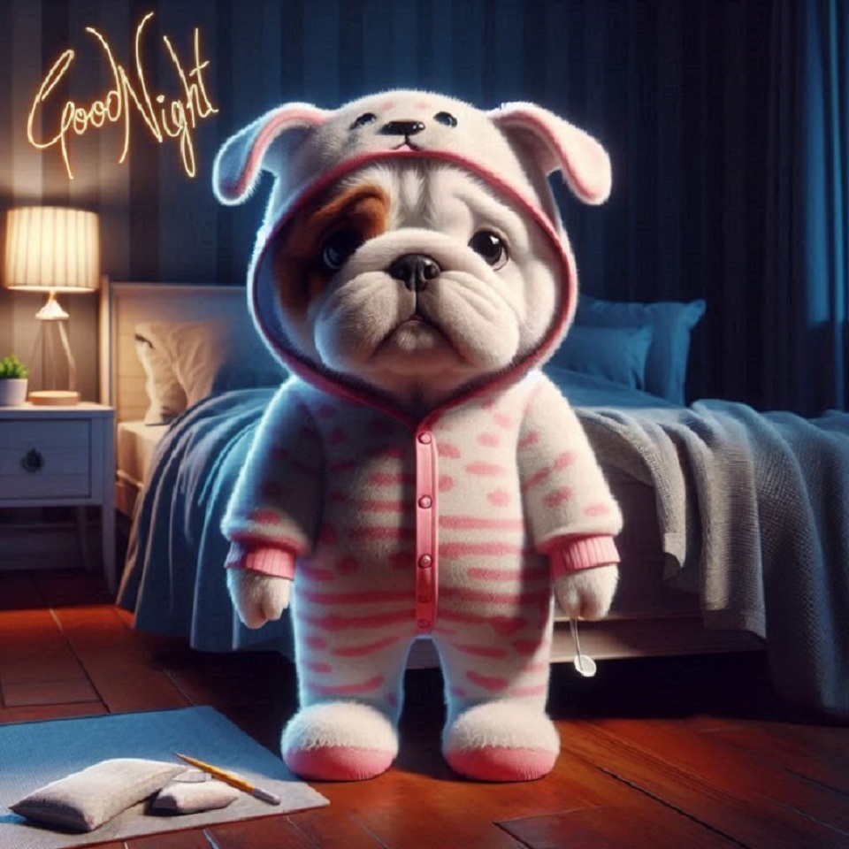 bonjour bonne nuit bulldog bully good night pyjama chambre lit kdo offert