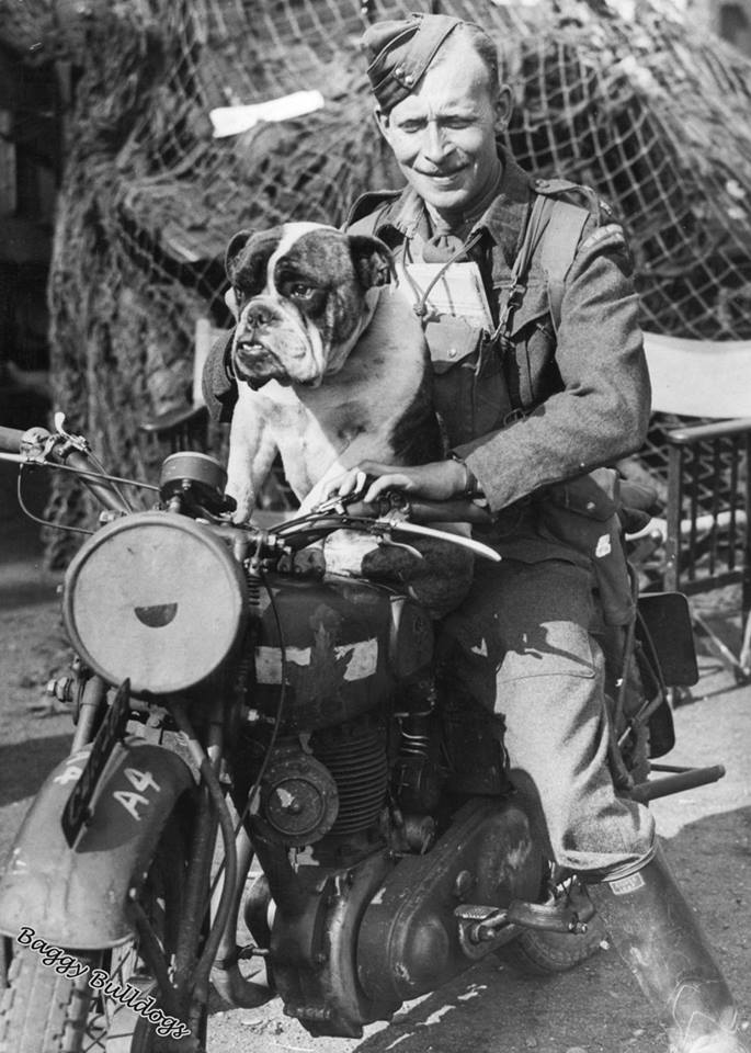 merci moto biker bulldog bully à moto noir et blanc vintage armée seconde guerre mondiale repos