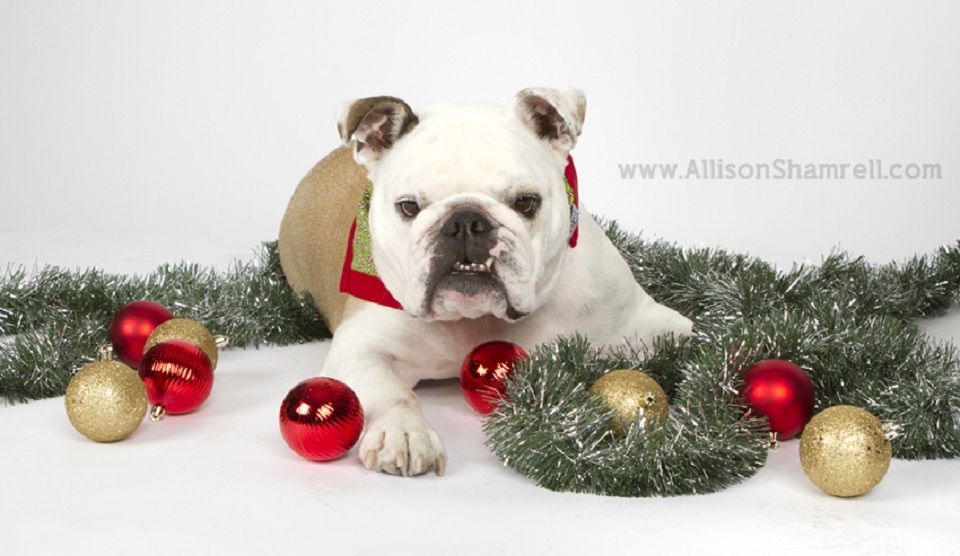 neige noel bulldog bully guirlande de noel boules de noel photographie d art photographe animalière peinture