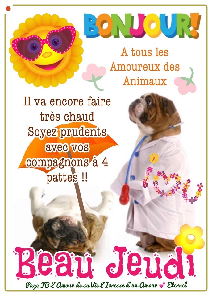 ..."... Il va encore faire très chaud. Soyez prudents avec vos compagnons à 4 pattes!! Bon jeudi"